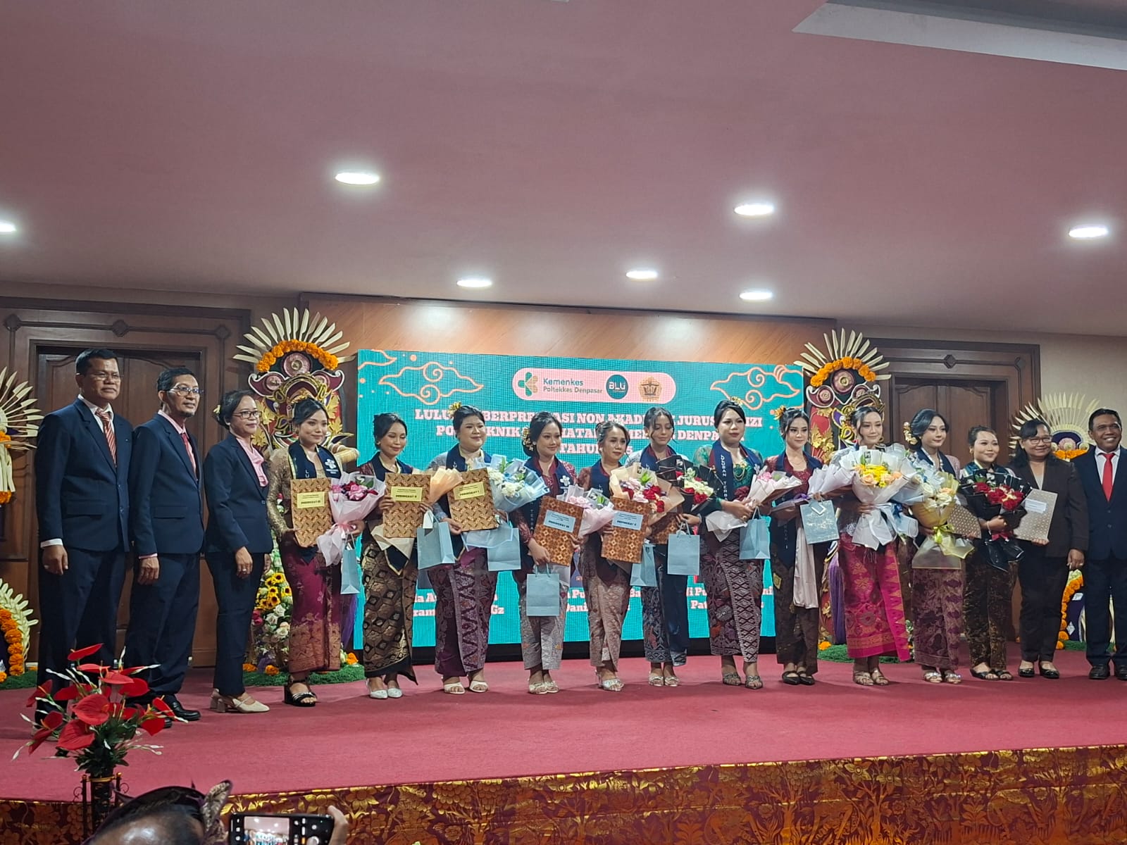 Lulusan Berprestasi Non Akademik Jurusan Gizi Poltekkes Kemenkes Denpasar Tahun 2025: Terbaik 1 Ida Ayu Pradnya Paramitha S.Tr.Gz.; Terbaik 2 Ni Luh Putu Putri Bajra Dani S.Tr.Gz. dan Terbaik 3 Ni Putu Radharani Patni Amd.Gz.