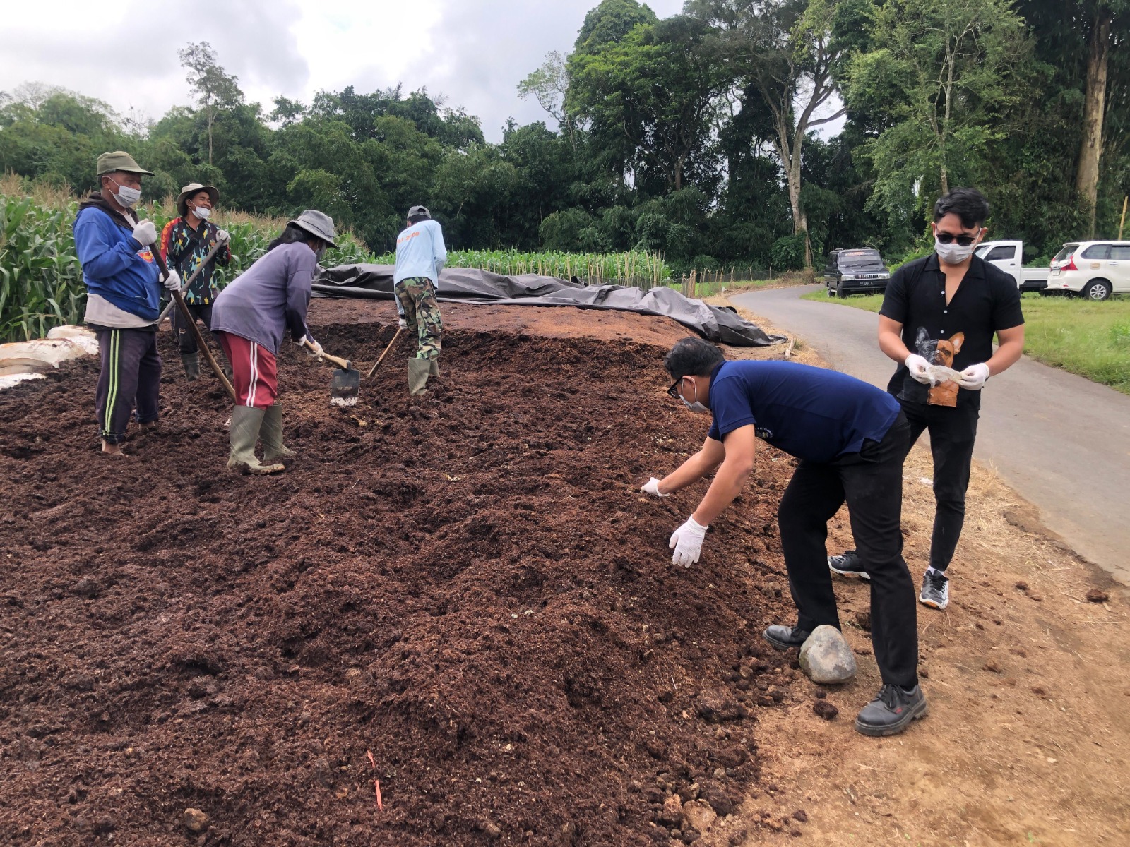 - Tutup adonan dengan terpal dan biarkan selama 7 hari untuk fermentasi. Suhu adonan harus dipantau, dan jika melebihi 50°C, adonan harus dibalik agar suhu kembali ideal.
